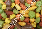 Ingrediënten: suiker, cacaoboter, volle melkpoeder, weipoeder (melk), cacaomassa, dextrose, plantaardige oliën en vetten, melksuiker, hazel- noten, amandelnoten, emulgator: sojalecithine, magere melkpoeder, kleurstoffen: E102, E110, E132, natuurlijk vanillearoma, specerijen.