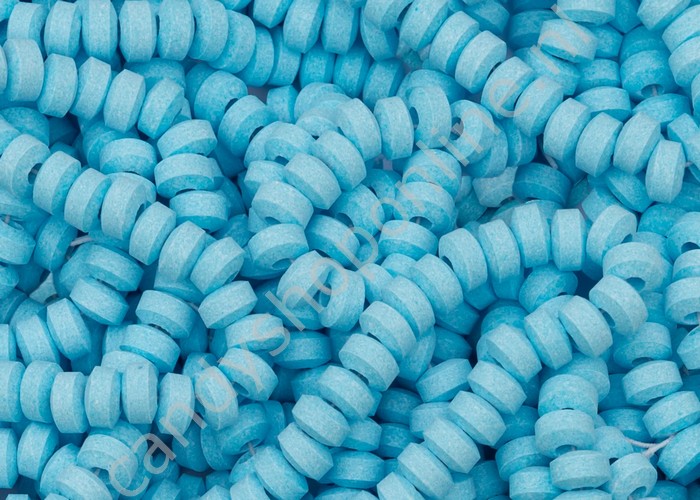 Ingrediënten: glucosestroop, dextrose, zuurteregelaar (E330), kleurstof (E133), aroma, glansmiddel (carnaubawas).
