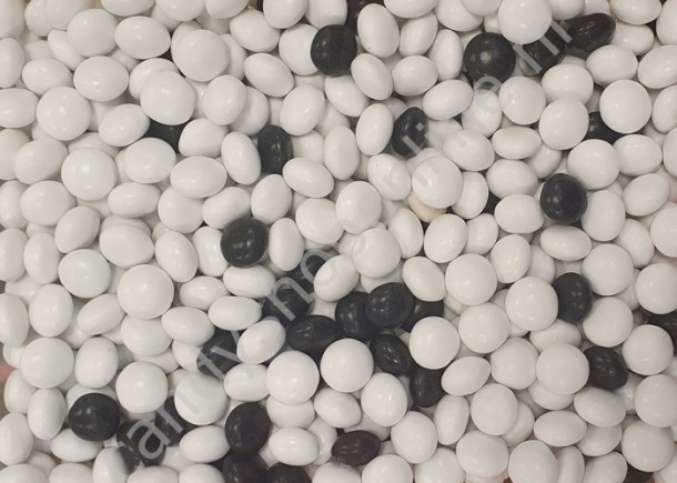 Ingrediënten: suiker, salmiakzout, zoethoutwortelextract, anti-klontermiddelen (E470b, E551), maltodextrine, dextrose, gelatine, kleurstoffen (E153), pepermuntolie, glansmiddel (carnaubawas), gemodificeerd zetmeel.